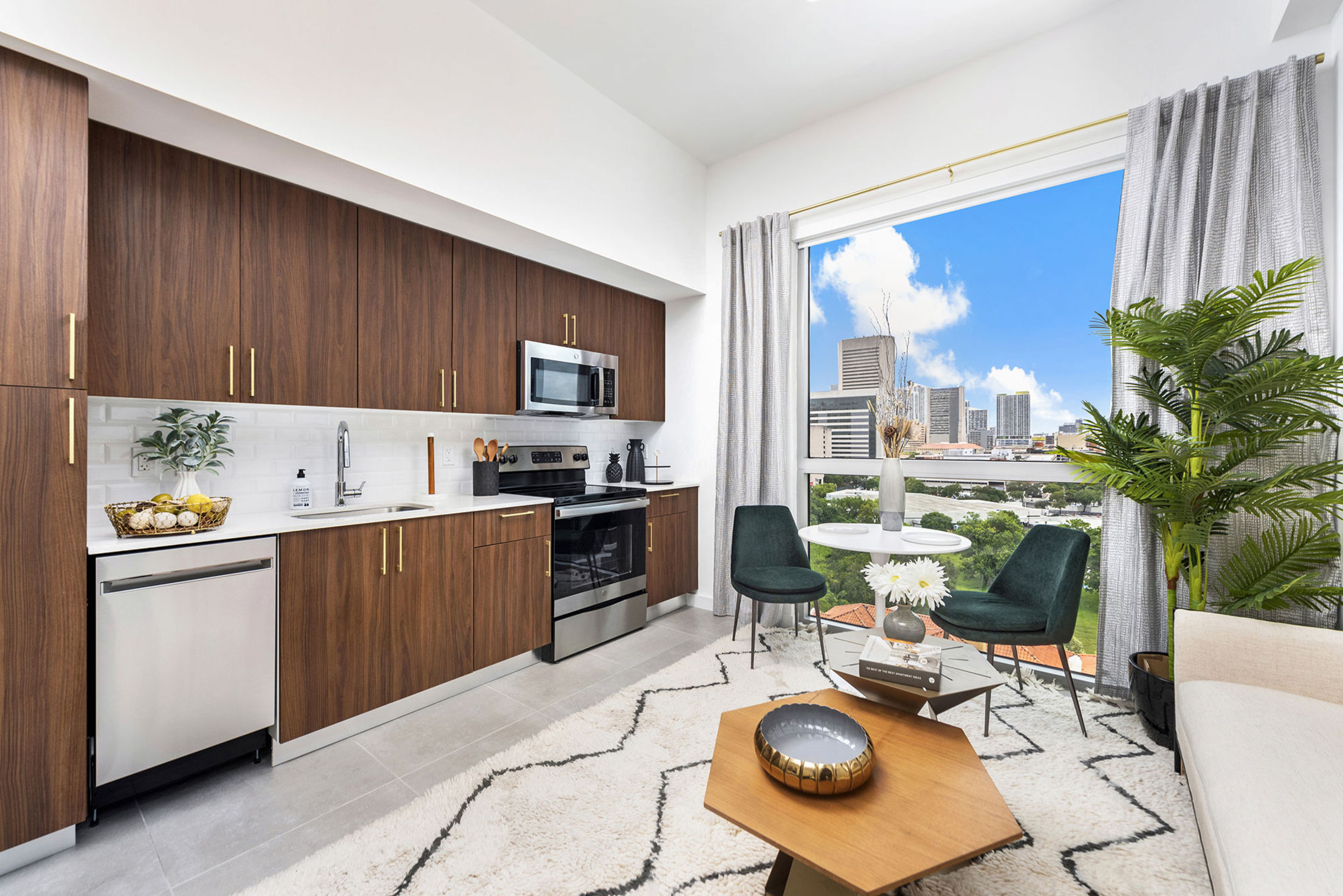 Grand Central sits two blocks west of the Metro-Mover, Metrorail, and Brightline Station and is adjacent to I-95, providing excellent visibility and access up the coast. Located just three blocks west of the mixed-use Miami World Center luxury master development, residents are within walking distance of high-end F&B and entertainment amenities and are just a five-minute drive from Wynwood, Design District, Midtown, the Health District, and Brickell, and less than 15 minutes from Miami International Airport.